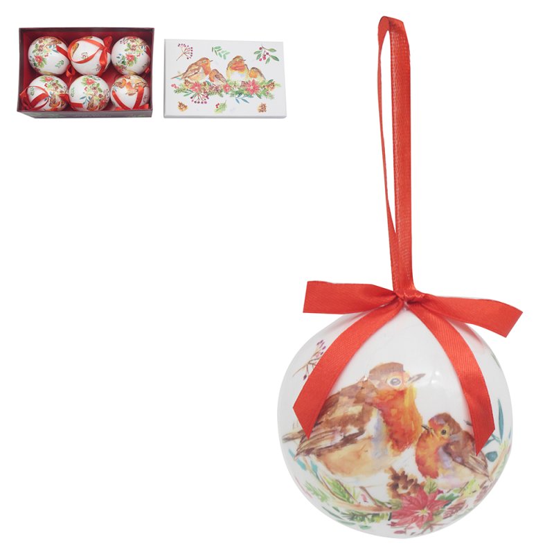 WINTER ROBINS BAUBLES SET 6
