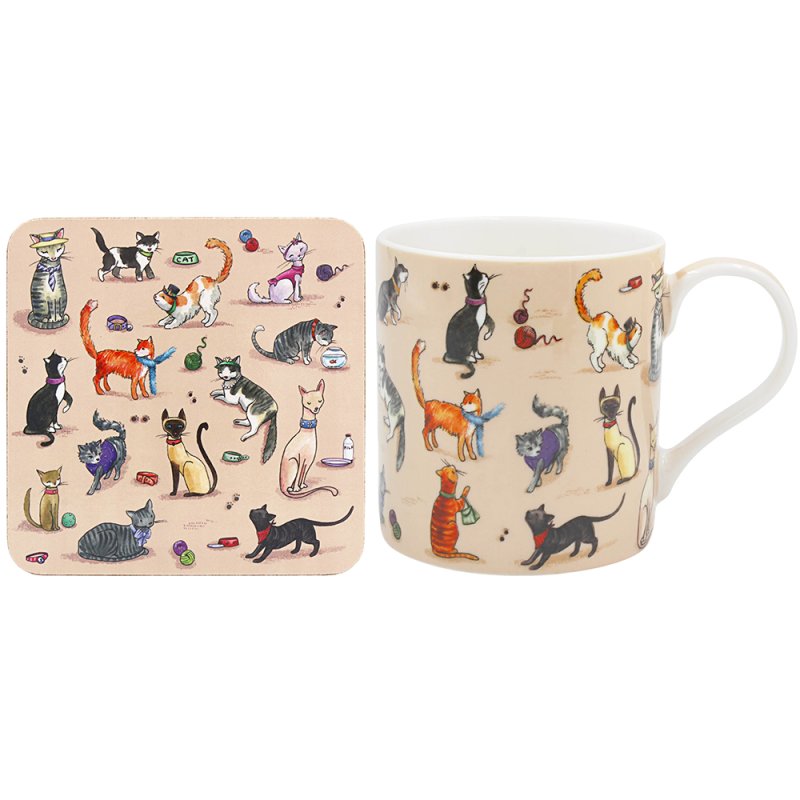 KITTY CATS MUG TRAY & COASTER FINOLA STACK