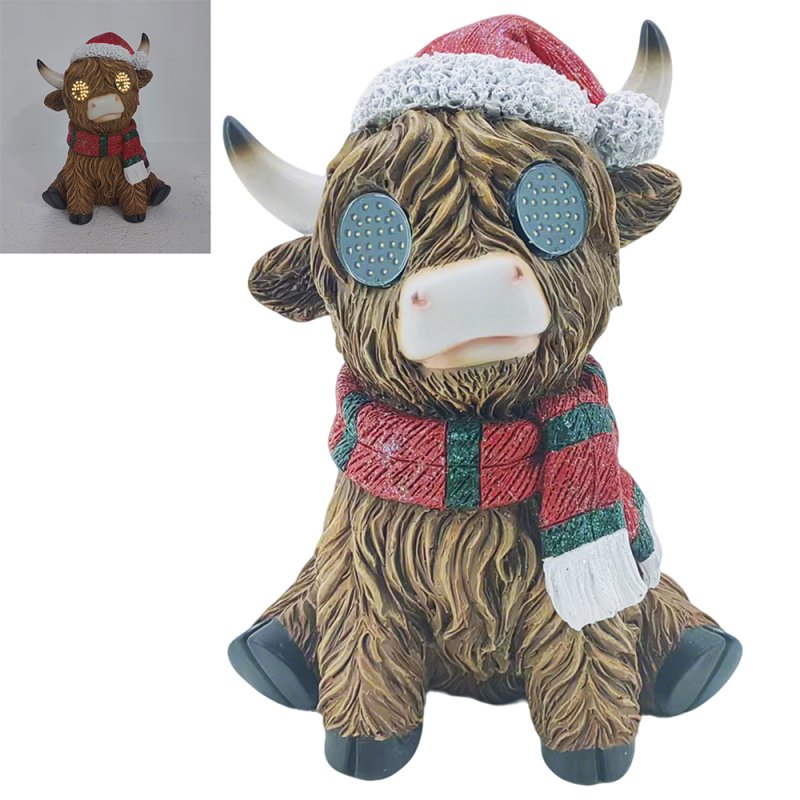 SITTING HIGHLAND COW WITH LED
