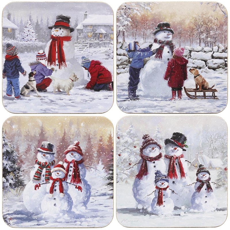 SNOWMAN COASTERS 4 SET 4 ASST