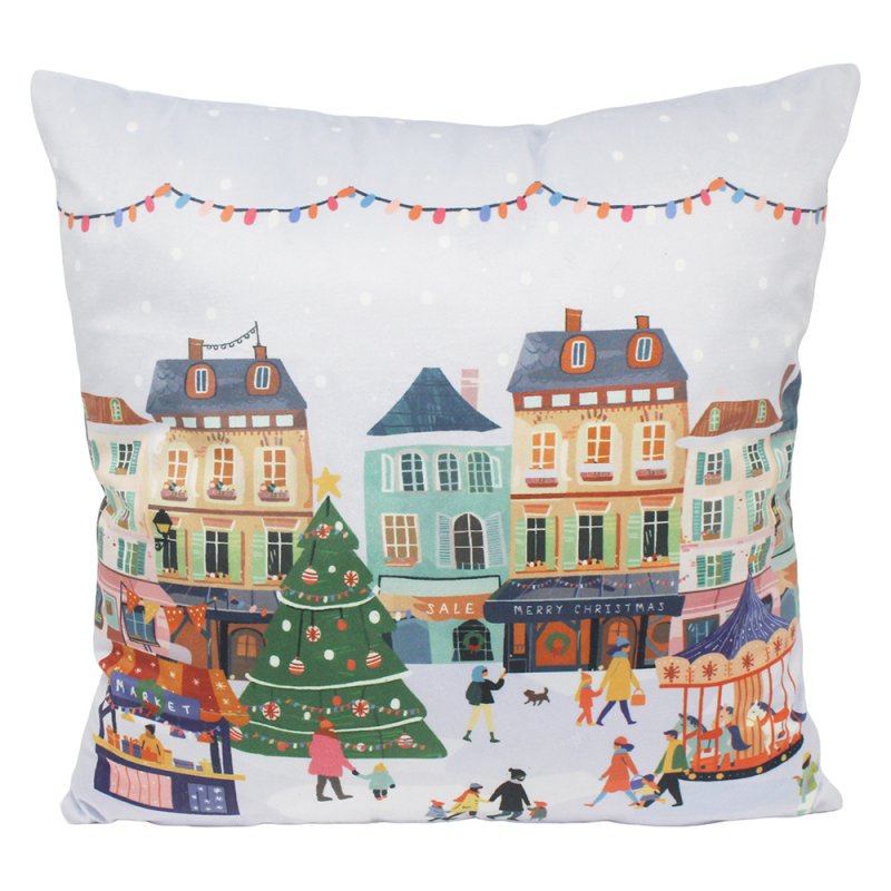 XMAS RED TINSEL TOWN CUSHION